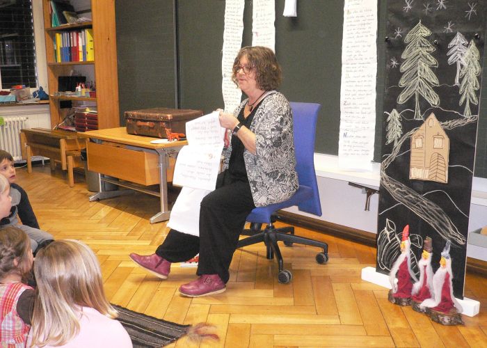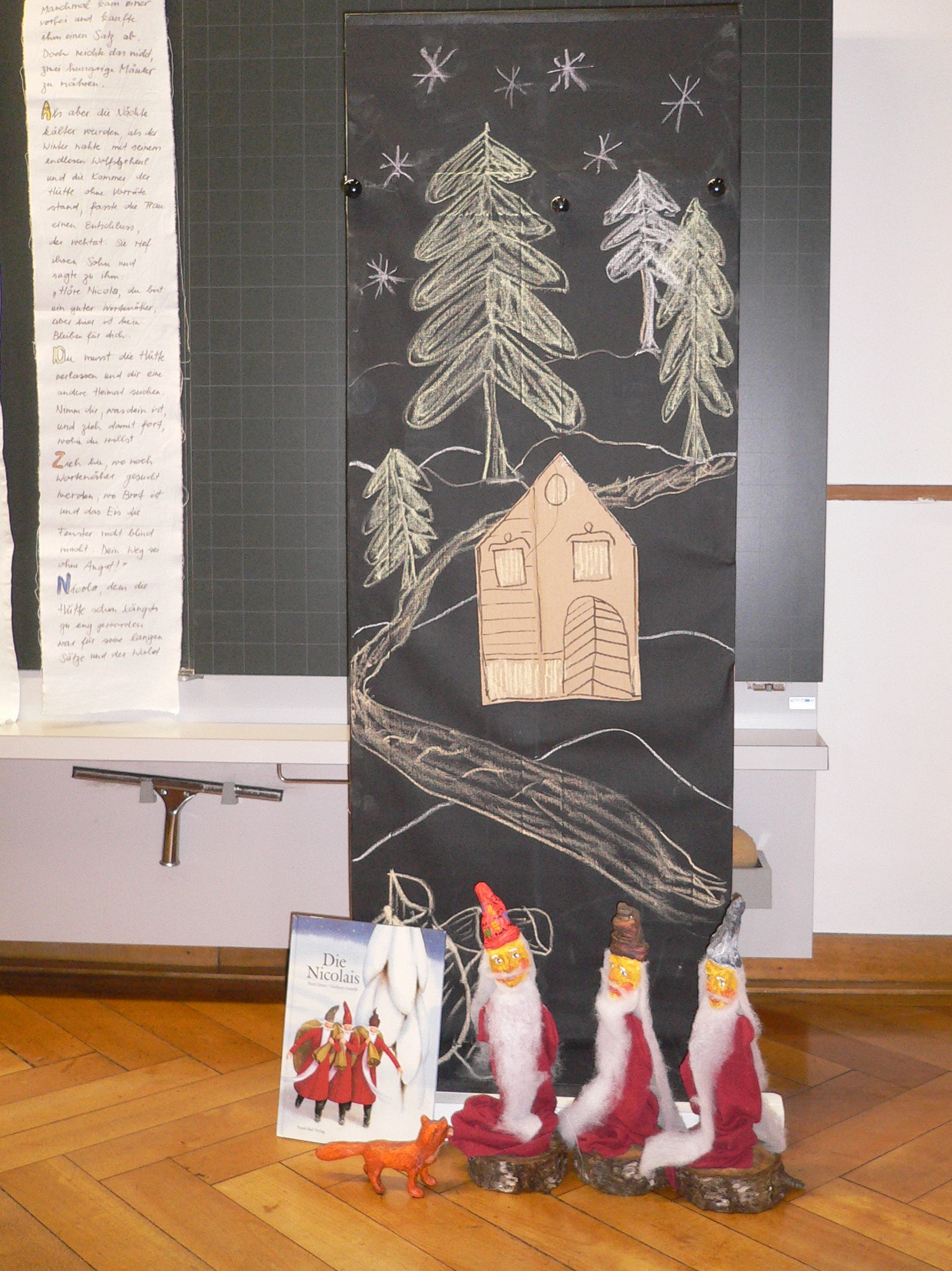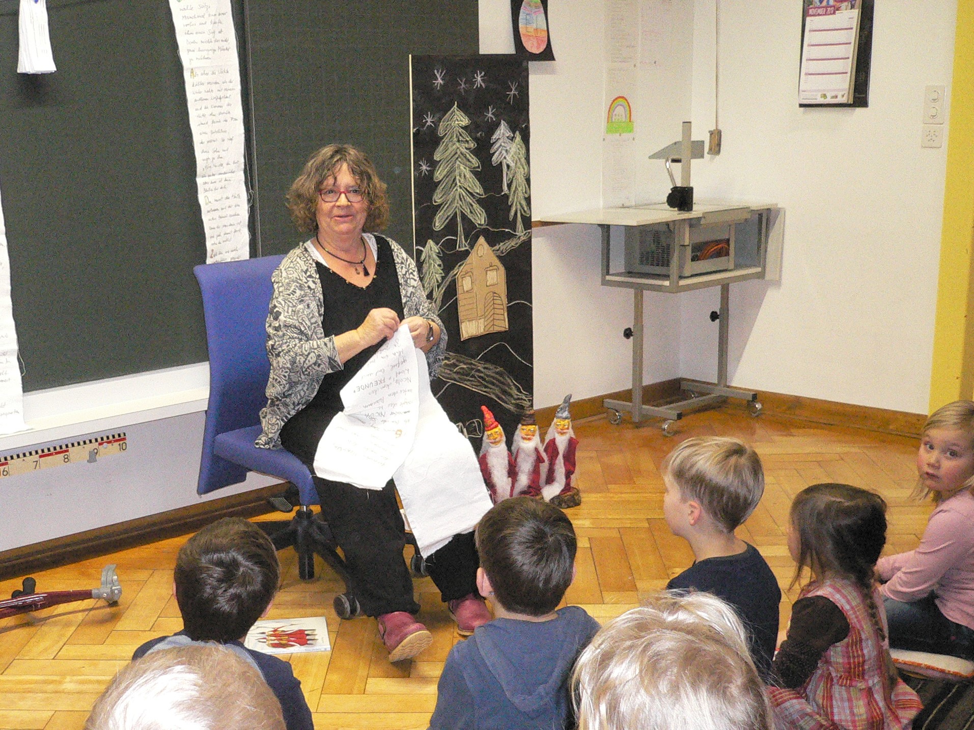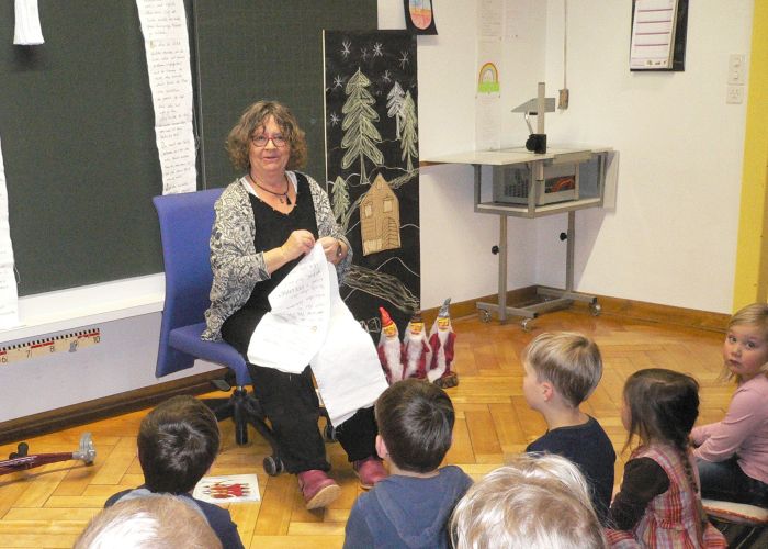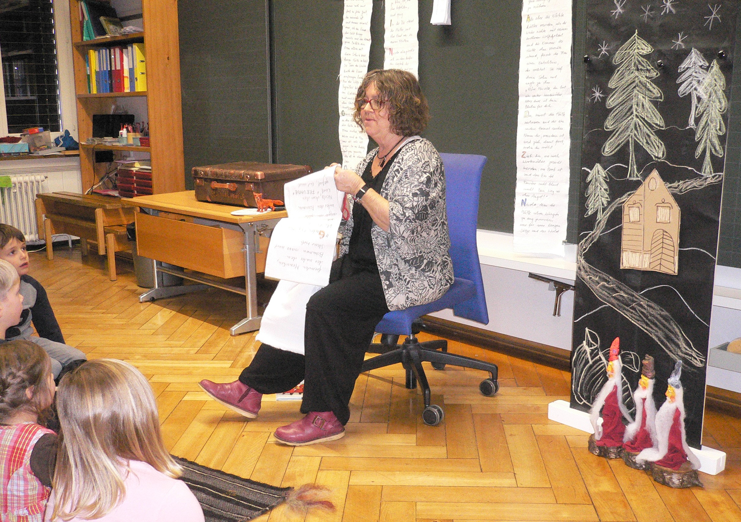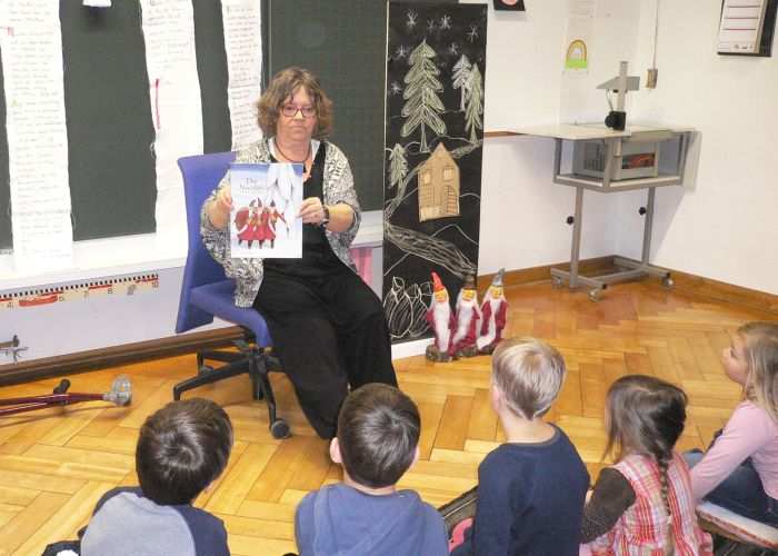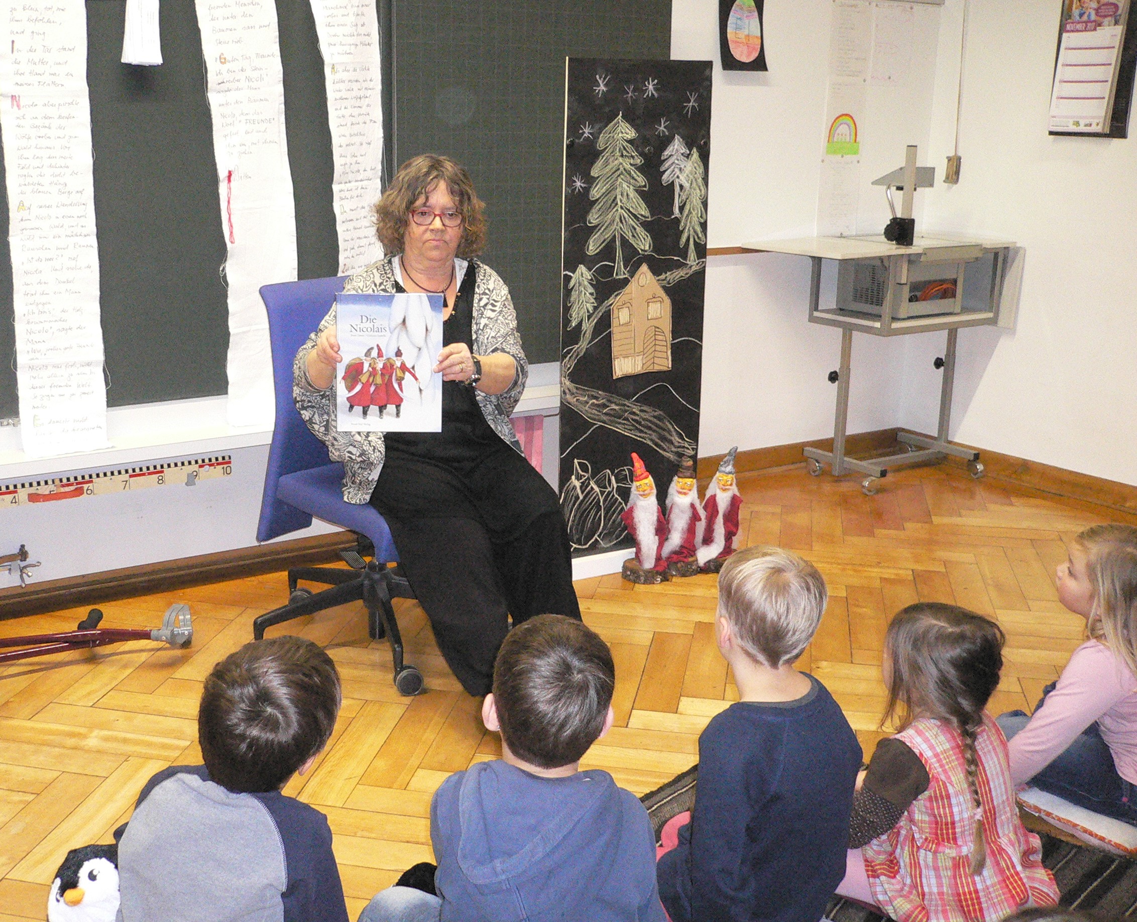 Am Mittwochnachmittag, 13.Dezember 2017 lud die Bibliothek Ebnat Kappel wie jedes Jahr Kindergärtler und Primarschulkinder zur Adventslesung ins weihnachtlich geschmückte Schafbüchelschulhaus. Gespannt lauschten die Kinder Frau Elisabeth Aebischers Geschichte nach dem Bilderbuch „Die Nicolais". Sie hörten vom armen Wortnäher Nicola, vom Holzkrummmacher Nicolo und vom Steinereiber Nicoli, die sich zusammentun, eine Hütte im Wald bauen und gemeinsam ihre Not meistern.