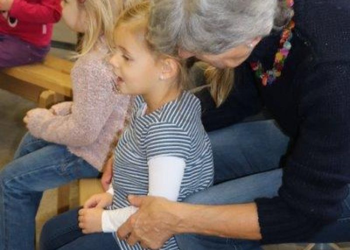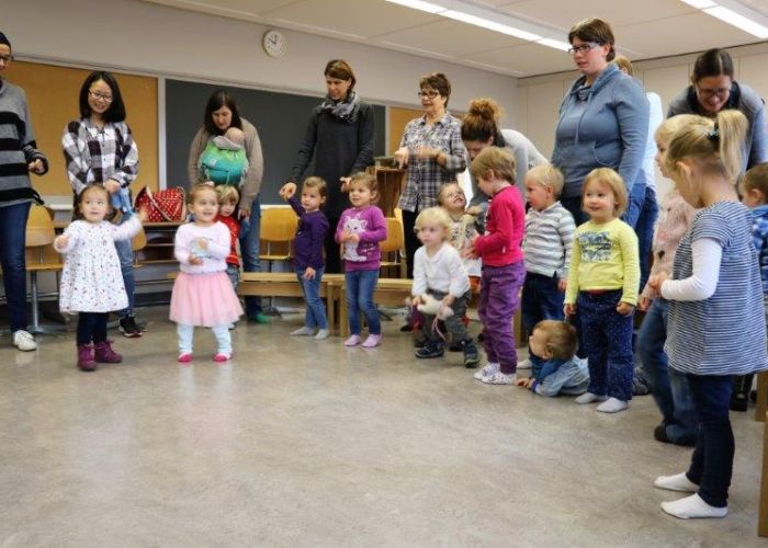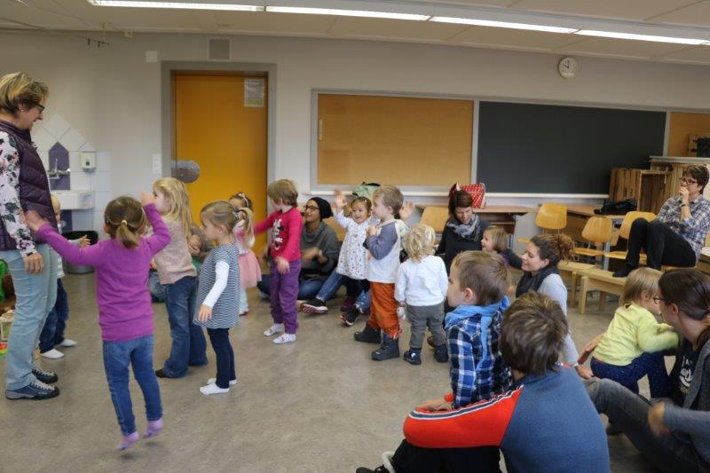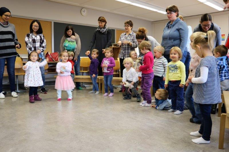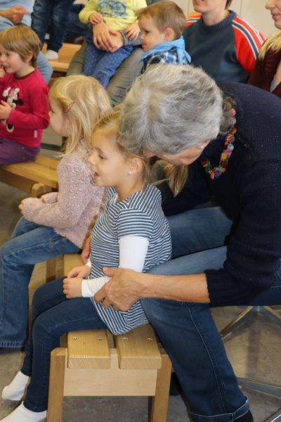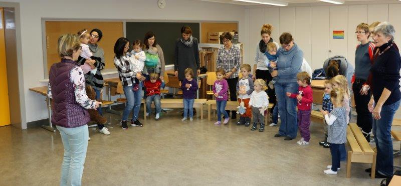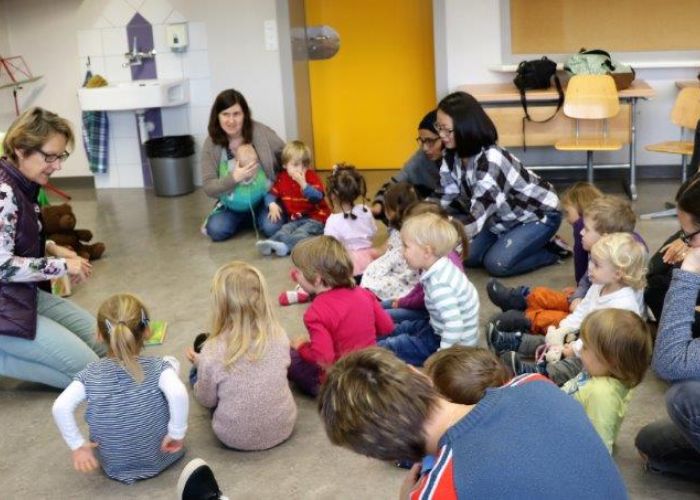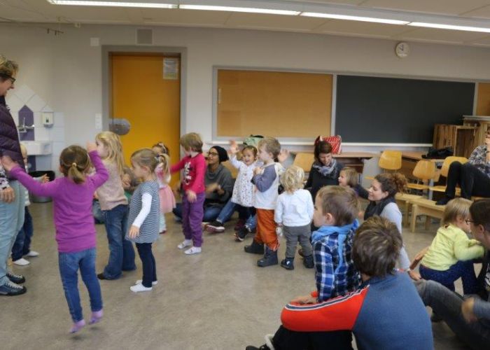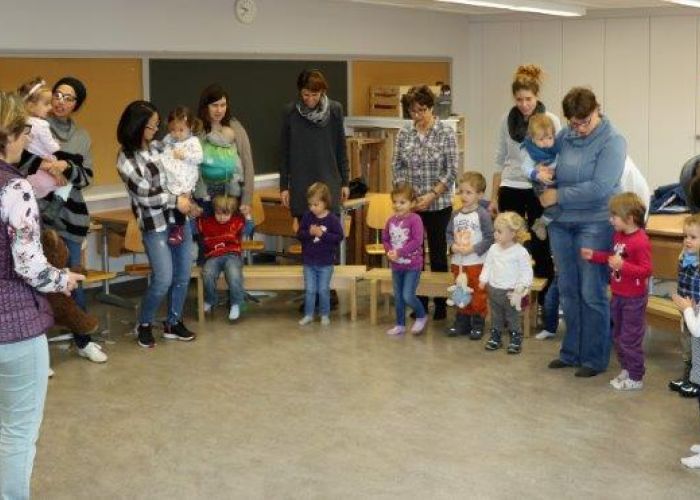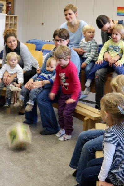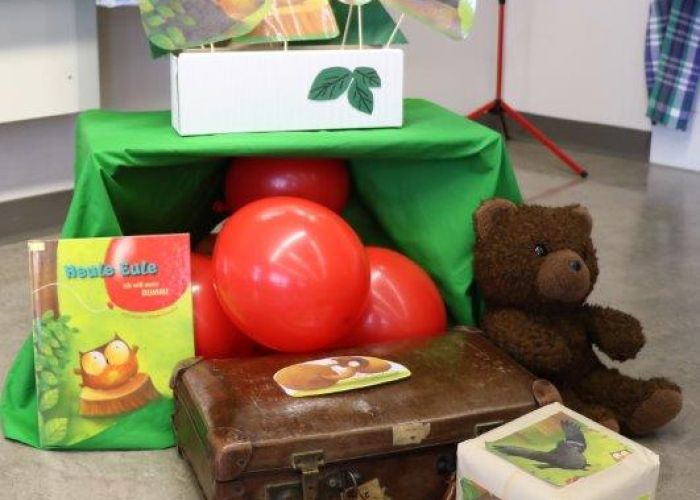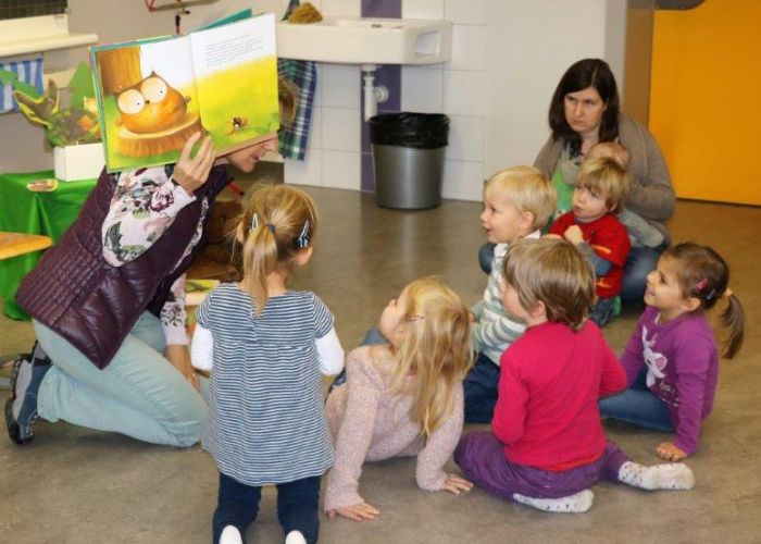 Gespannt folgten die 15 Kinder mit ihren Mamis und Grossmamis der Geschichte der Heule-Eule und ihrem roten Luftballon. Mit Liedern, Verslis und Bewegung erzählte die Bibliothekarin Elisabeth Solèr, wie die kleine Eule mit Hilfe ihrer Freunde ihr verlorenes "Bumm" wieder fand (Friester, Paul: Heule Eule: ich will mein Bumm!; NordSüd).Danach durften die Kinder, ausgerüstet mit einem eigenen roten Ballon und den gehörten Versli, in der Bibliothek Bücher anschauen und ausleihen.