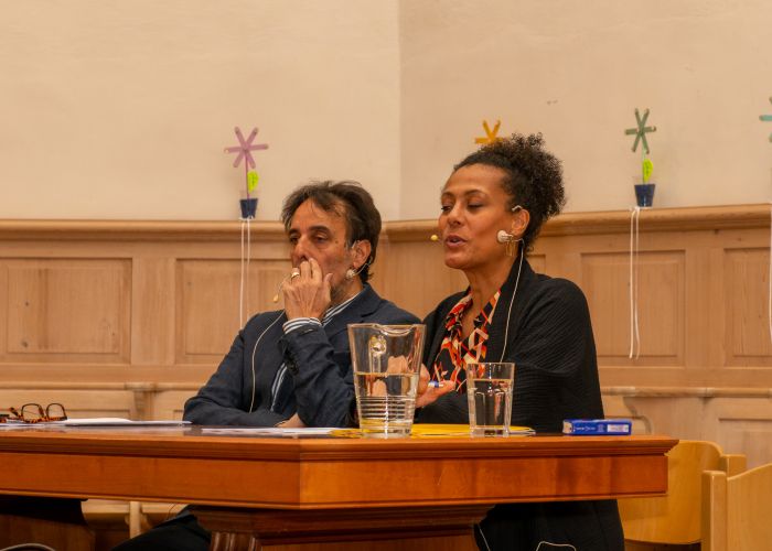 Eine Schar von über 70 Personen allen Alters erwartete gespannt auf den Start der Lesung mit Angélique Beldner und Martin R. Dean in der evangelischen Kirche Ebnat-Kappel. Mit einem lockeren Einstieg, der jedoch bereits zum Nachdenken anregte, starteten die zwei Persönlichkeiten gekonnt in den Abend. Es war eine kurze, intensive Lesung im Dialog. Mit sorgsam ausgewählten Worten erzählten sie von ihren persönlichen Erfahrungen als People of color, kurz PoC. Wie es sich anfühlt, bereits durch das Aussehen so auffällig zu sein, dass man übergangen, übersehen und schlussendlich unsichtbar wird. Über den Wunsch, nicht gleich sein zu sollen sondern akzeptiert sein im Anders Sein. Mit einem Apell an ein respektvolles Zusammenleben und der Bereitschaft zum Dialog und einer offenen Diskussion schlossen Angélique Beldner und Martin R. Dean die Lesung.