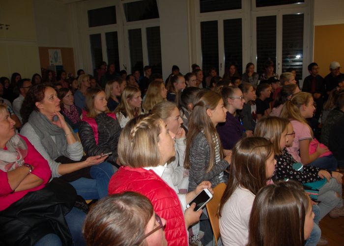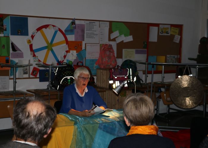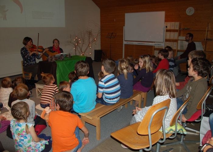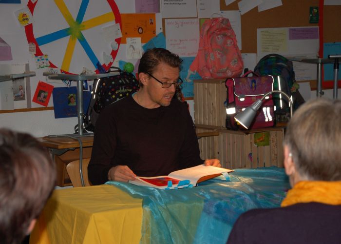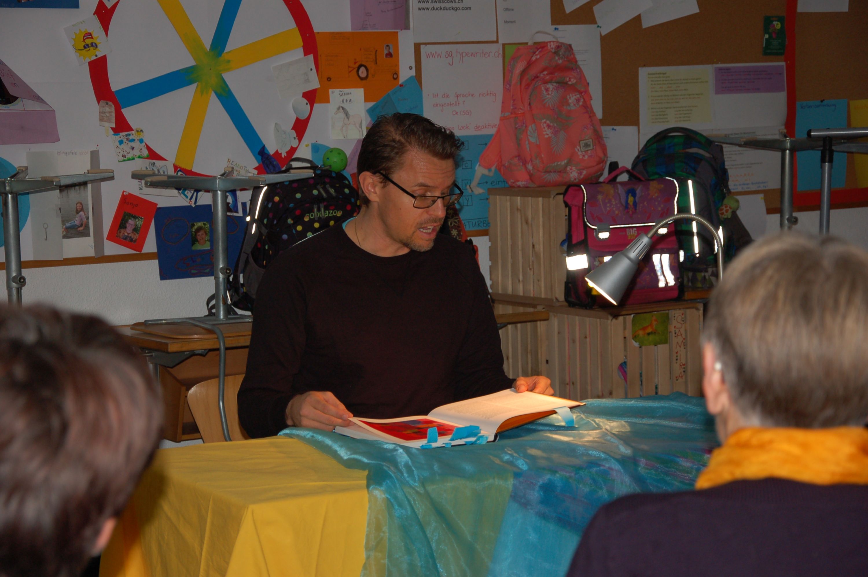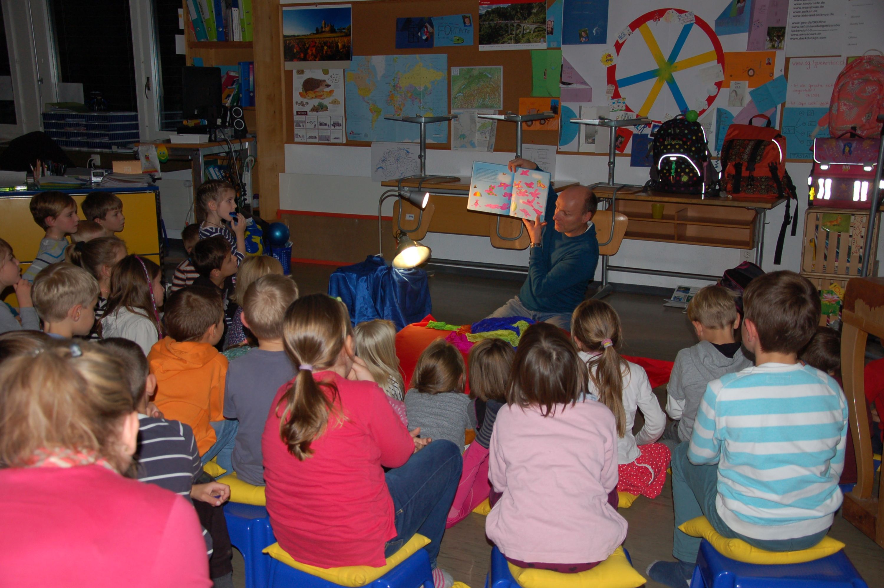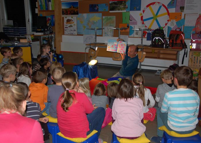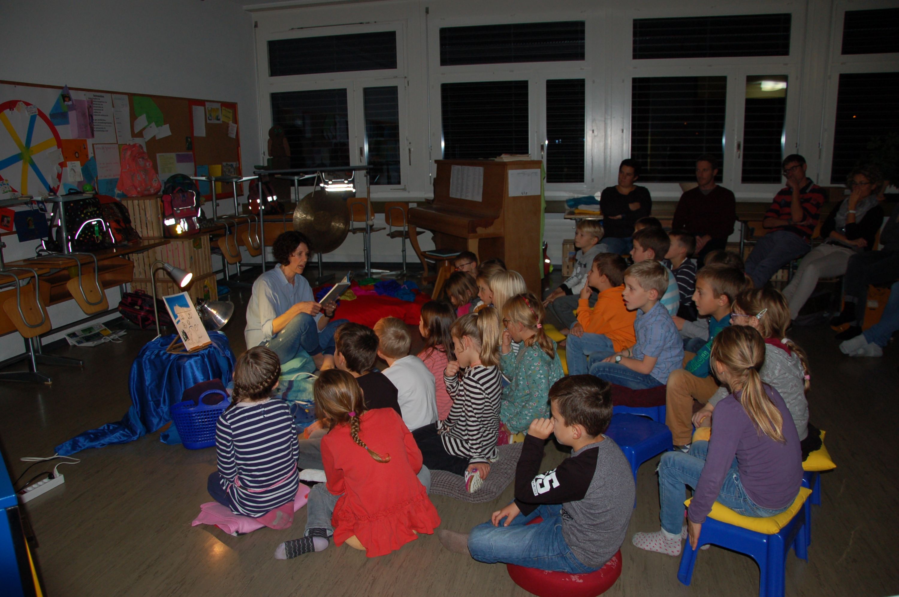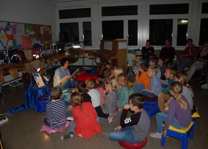 Jedes Jahr steht der zweite Freitagabend im November im Zeichen der Schweizer Erzählnacht. Auch diesmal folgten viele Kinder mit ihren Familien der Einladung der Schule und der Bibliothek zu diesem traditionellen Geschichtenabend. Dieser Anlass zugunsten der Leseförderung macht die intensive Zusammenarbeit zwischen der Schule und der Bibliothek auch für die Öffentlichkeit sichtbar. Unter dem Motto „In allen Farben“ verwandelten Lehrpersonen, Schülerinnen, Schüler und weitere Vorlesende gemeinsam mit der Bibliothek das Schulhaus Schafbüchel in einen Treffpunkt für Kinder, Jugendliche und Erwachsene. Farbig, mehrsprachig und unverwechselbar zeigten Schülerinnen und Schüler ihre Stärken und zogen das zahlreiche Publikum mit selbstverfassten Geschichten, szenischen Lesungen und Sketchen in ihren Bann. Davon dass jede Farbe eine besondere Bedeutung hat und Geschichten voller Farben sein können, überzeugten sich sowohl Erwachsene in Lesungen auf Deutsch oder Englisch als auch Kinder.